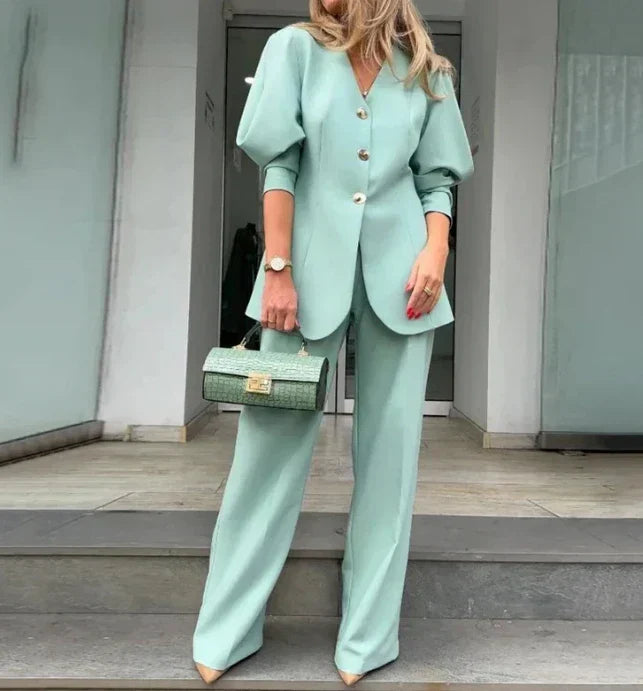 Das Angela Ärmel-Loser Anzug-Mantel- und Hosen-Set vereint entspannte Eleganz mit modernem Stil. Entworfen für Frauen, die Komfort und Raffinesse schätzen, ist dieses Set ideal für berufliche Anlässe und lässige Ausflüge.